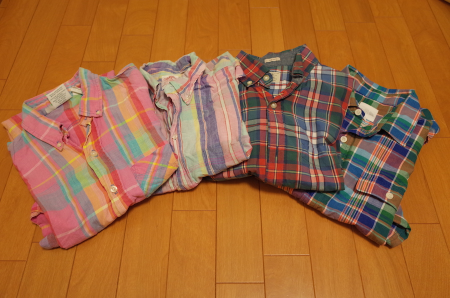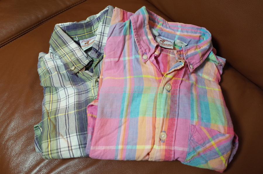 たぶんこいつらだな。高校生の時に買ったPrentissのシャツ。すごく縫製がしっかりしていて、ボタンも十字に縫い付けられている。なので、生地がかなり薄くなってきて、もう部屋着にしか使えないのに、縫製はまだまだバッチリ。昔のアメリカ製品は丈夫だ。