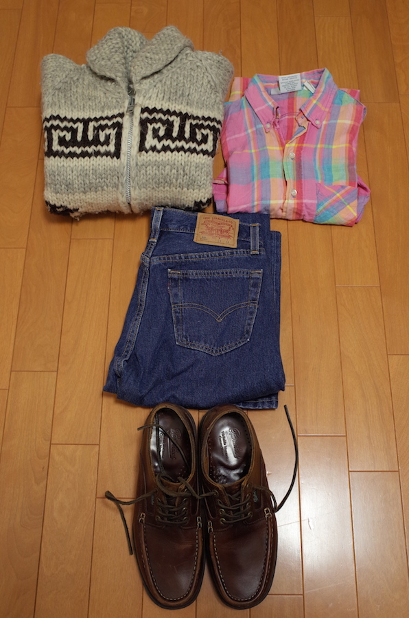 レギュラー501の代わりに数年前に買った80年代製501 studentと、ティンバーランドの3アイレットの代わりにパラブーツを合わせたら、ほとんどそのままだな。まったく進歩がない。まあ実際にはカウチンセーターなんてもう5年に1回くらいしか着ないが。