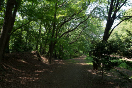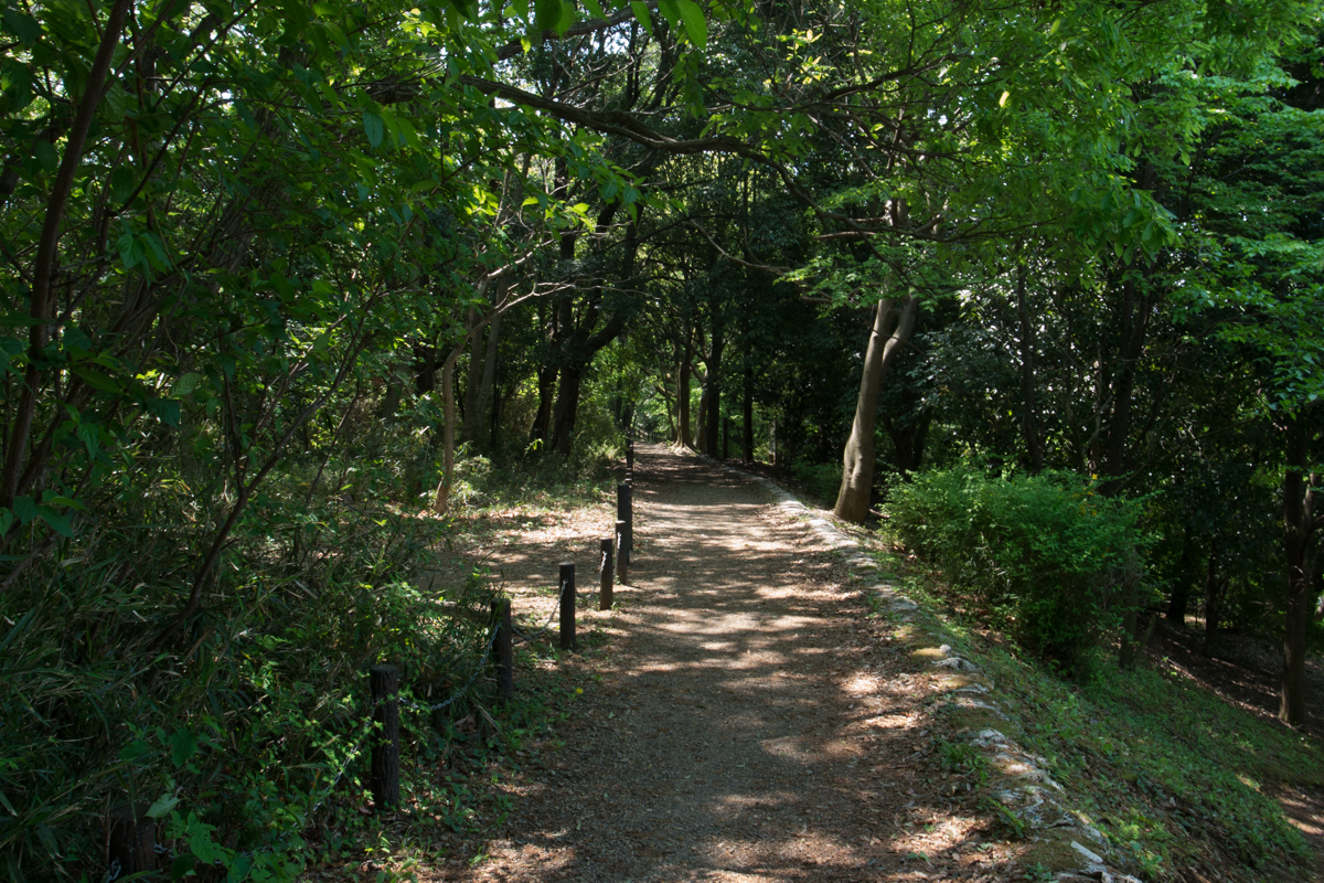 尾根緑道も緑が多くてとても気持ちよい。舗装路の脇に未舗装のルートがあるのもよい。