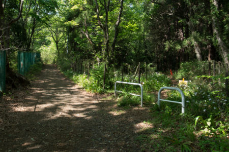清掃工場の少し手前かな。清掃工場のところで道路を渡ってトレイルに復帰したあと、少し進むと開けた場所に出る。そこを登った先は右折。左の小山田緑地方面に進むとよこやまの道から外れてしまう。