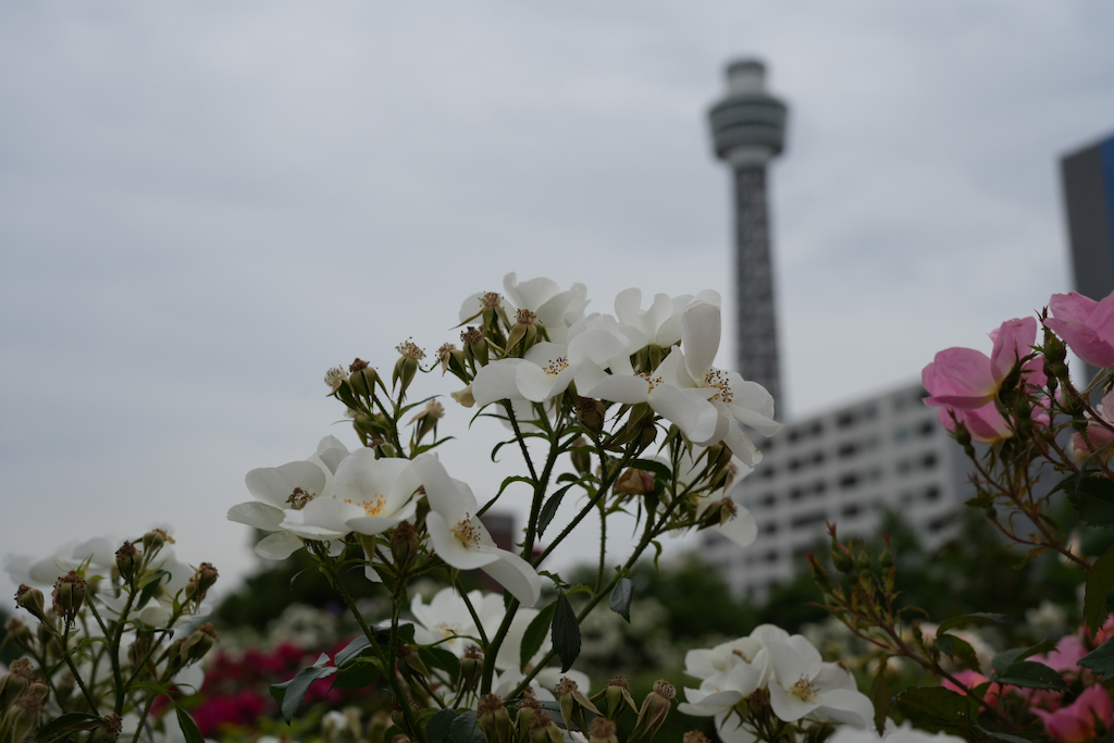 バラのきれいな季節。バラ園もきれいだが、一番元町よりのセクションにあったこっちのほうがシンプルで良い。よく見るとワイヤーできれいに形を整えている。